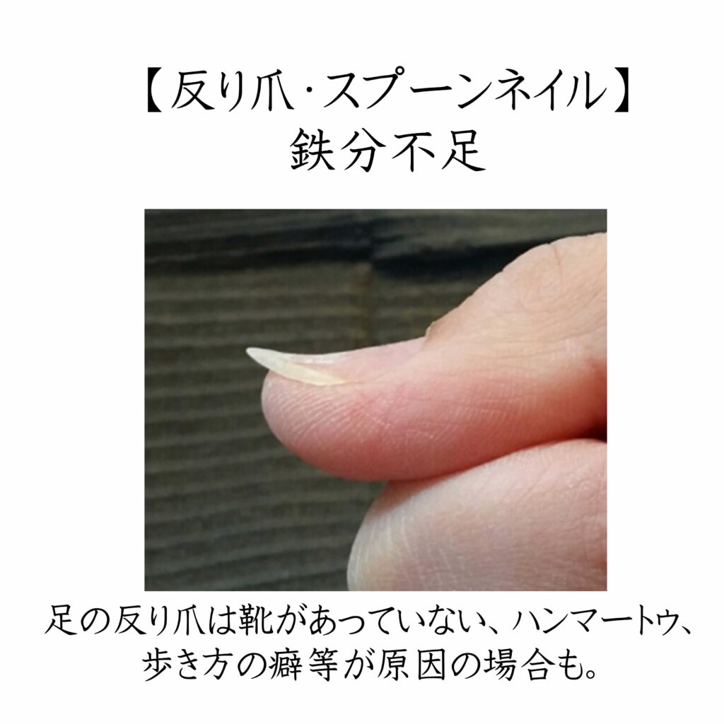 鉄分不足。爪以外に自律神経等の症状がある場合は食べ物だけで改善するには時間かかりすぎます。サプリを上手に利用してください。