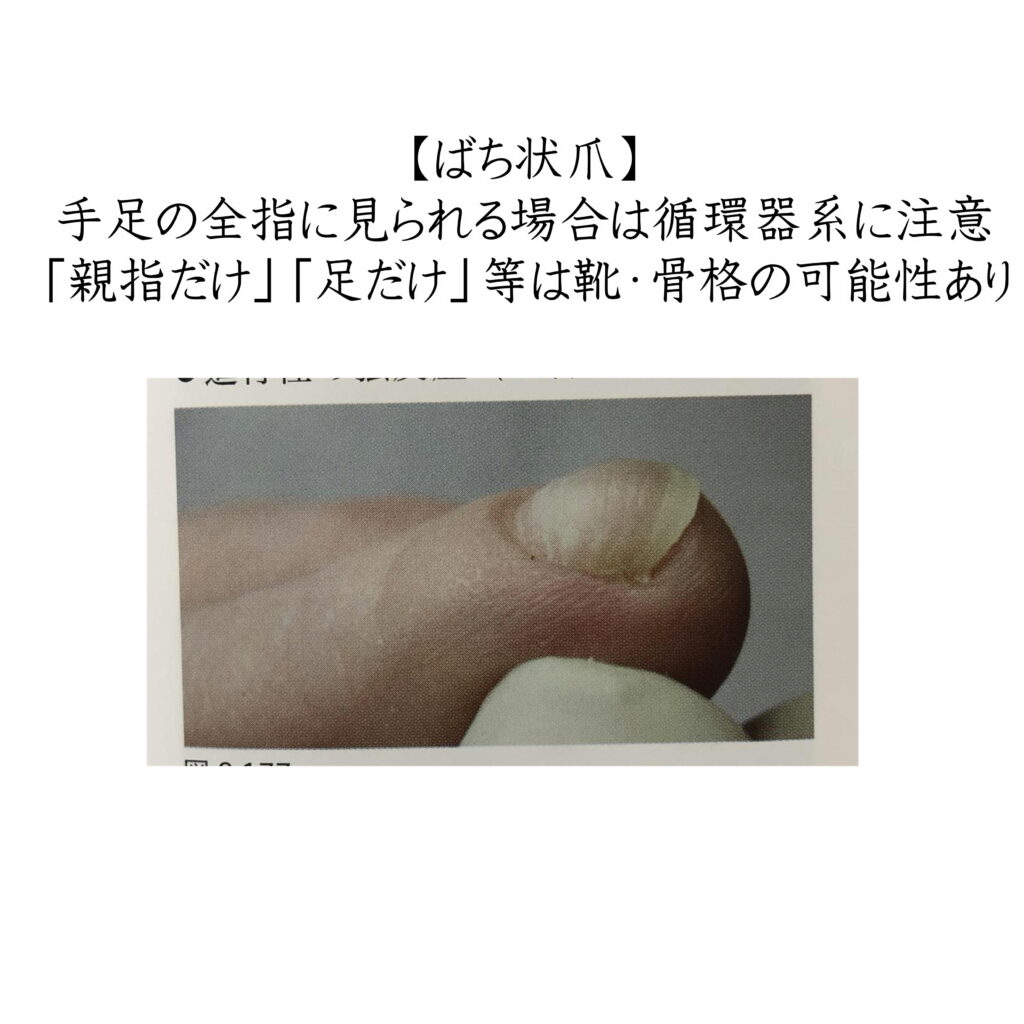 呼吸器・循環器に疾患がある方に良く見られます。その場合はすべての手指に現れます。