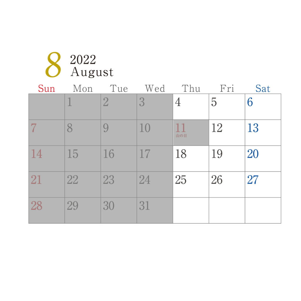 2022年8月営業日のお知らせ
