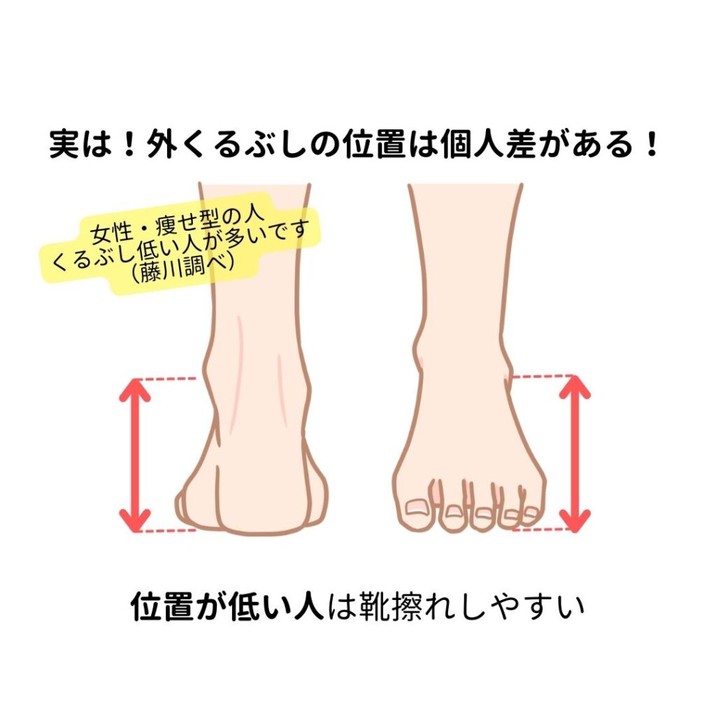 まず、くるぶしの位置は個人差があることを知ろう