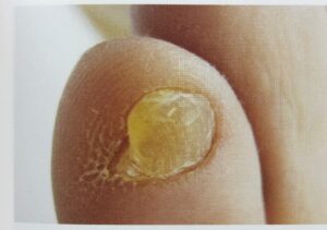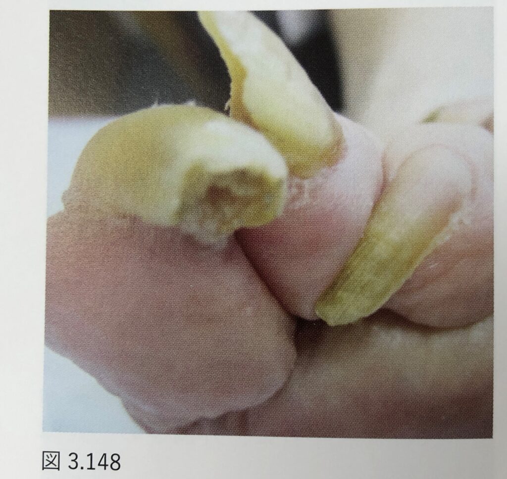 1枚目:小指の爪の肥厚は最も多いです。常に小指が靴に当たっているため、爪が正常にはえてきていないんですね。