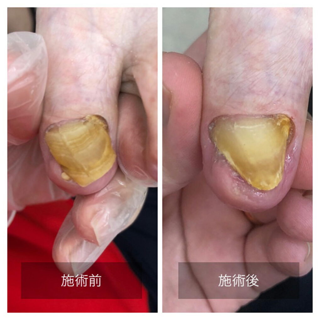 今回は剥離した分を除去し、1㎝弱あった爪の厚みを薄くする処置を行いました。