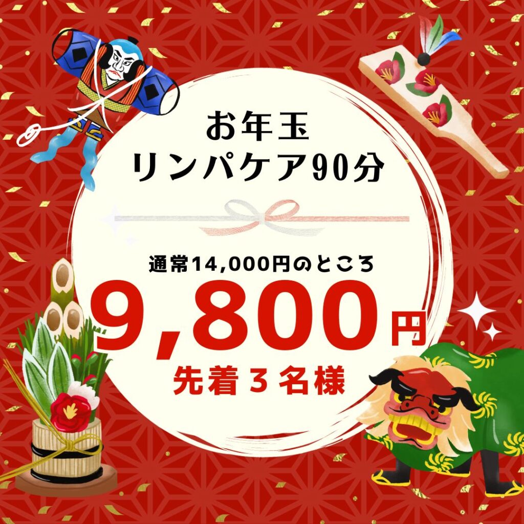 【お年玉・リピーター様】お手当リンパ90分9,800円【満席になりました】